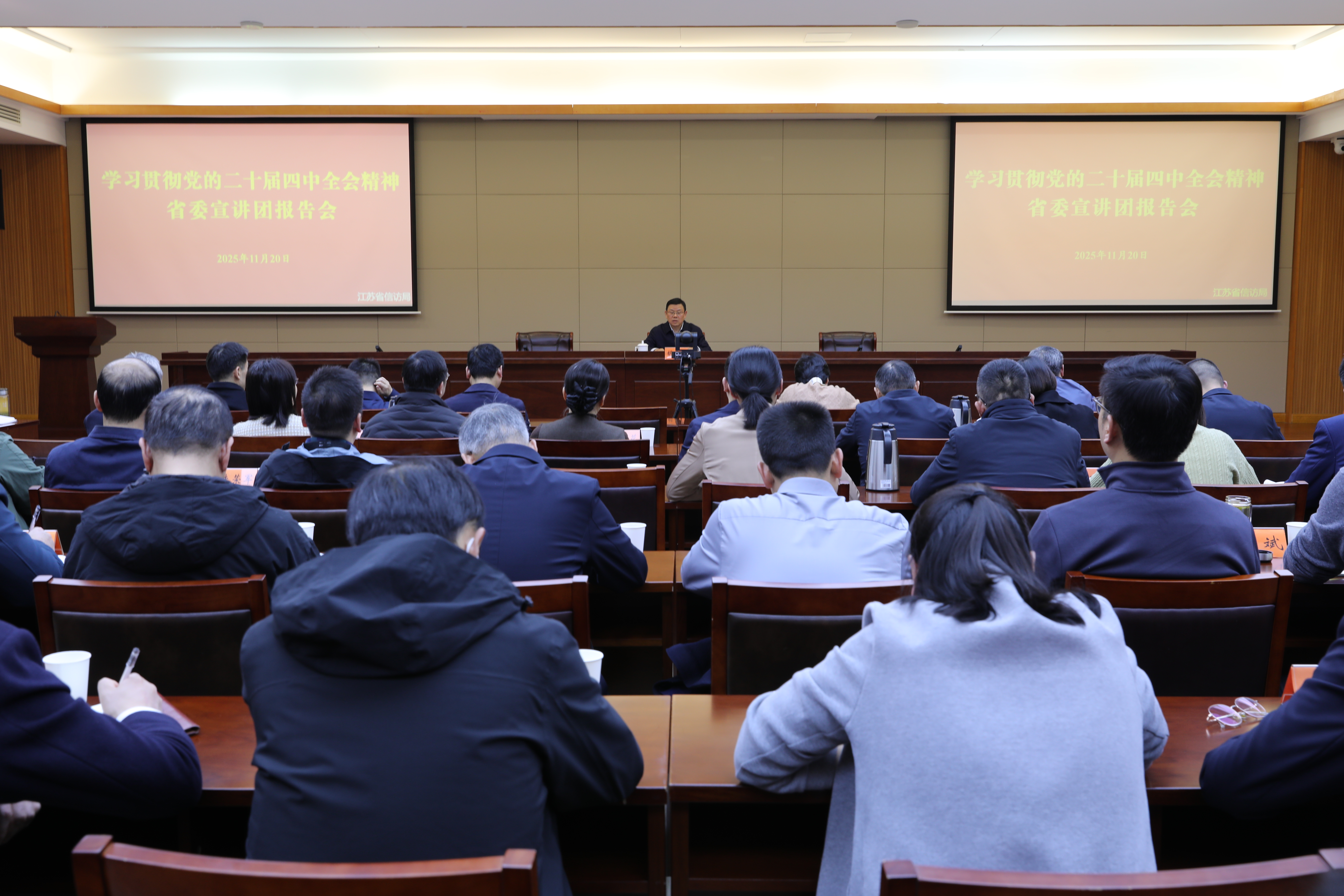 根据省委统一部署,11月20日,学习贯彻党的二十届四中全会精神省委宣讲团社会工作系统专场报告会在南京举行。省委宣讲团成员,省委社会工作部部长、省委“两新”工委书记、省信访局局长胡建军作宣讲报告。